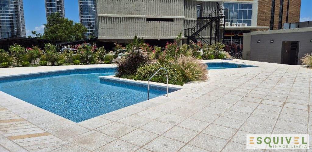 Departamento a ESTRENAR en ALQUILER en Torre II GARDEN INN en el Puerto de Santa Fe. El mismo se encuentra en el 3° piso contra frente del edificio que consta de 14 pisos. El departamento cuenta con cocina totalmente equipada, horno y anafe electricos, balcón, baño equipado con griferías de primera línea, 1 dormitorio con placard con su interior completo, aire acondicionado en todos los ambientes; y cochera semicubierta. Amenities: pileta exterior, salón de usos múltiples con asadores, recepción. solarium ascensor. Seguridad privada las 24 horas. Aquiler: $760.000 MAS EXPENSAS.